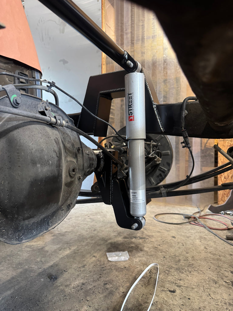 Adjustable Shock Relocation. Comes with upper cross bar tabs and lower 2 piece adjustable axle mounts, with bolts and hardware. Upper cross bar sold separately